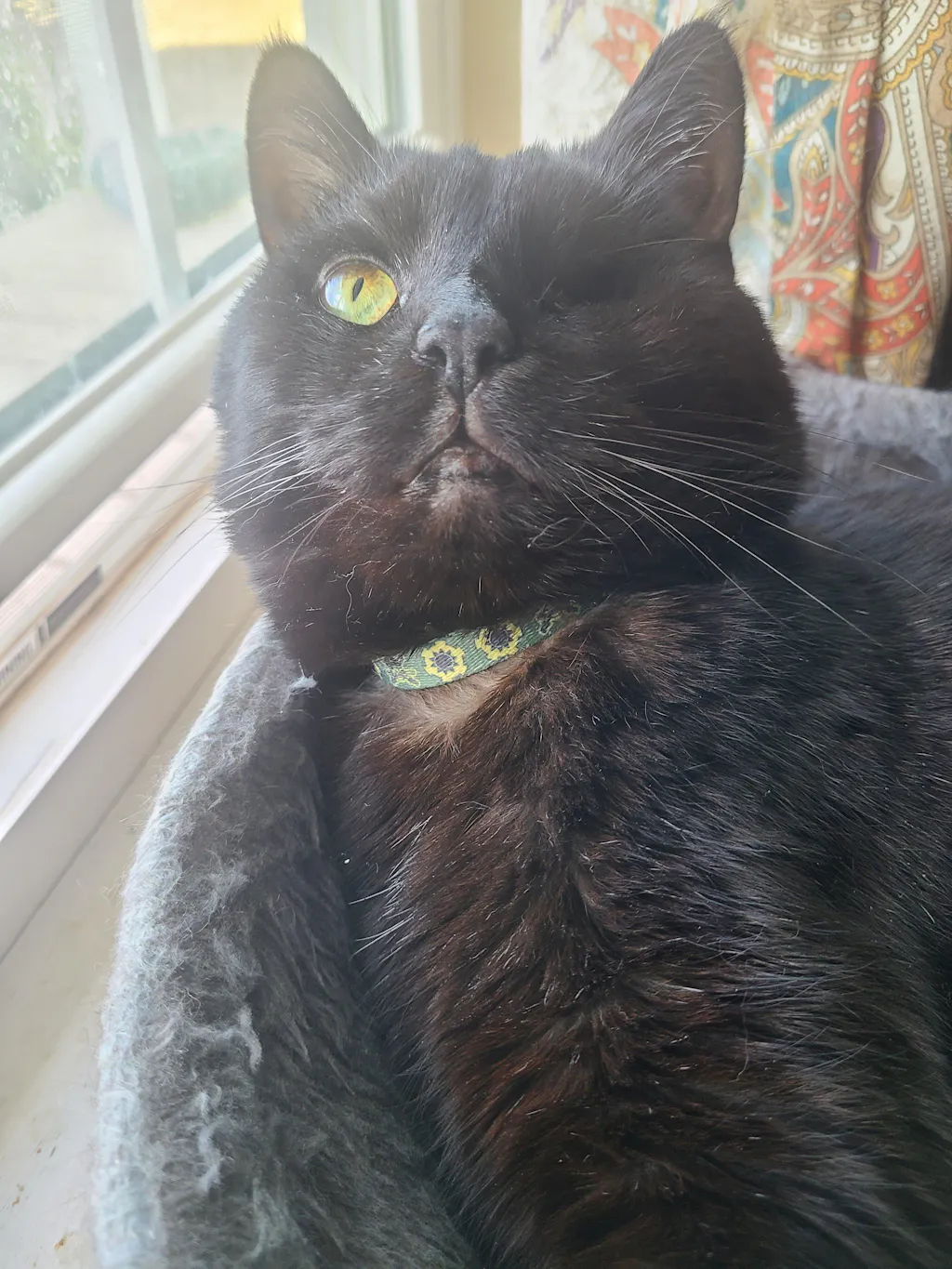 I needed a new collar for my one-eyed sa-meow-rai, but he's super picky, having only ever liked purple collars in his 14 years giving the grumpiest faces this side of the Grand Line.